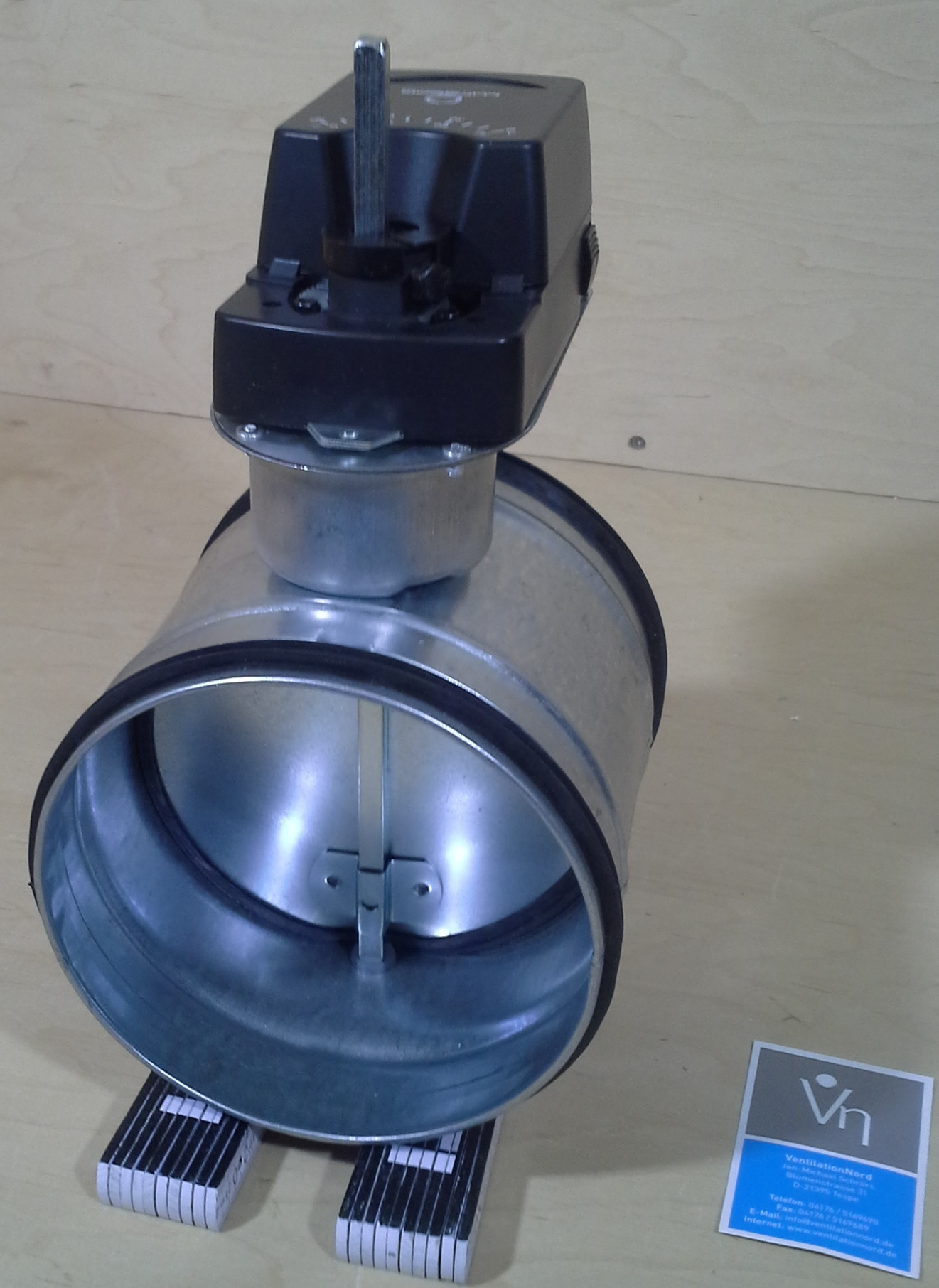 - Die Klappe wird mit montiertem Stellantieb und voreingestellten Endlagen für Auf und Zu geliefert