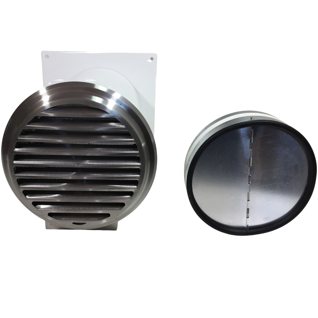 - Mit Rückstauklappe, Stahl verzinkt mit Aluminium Klappenblättern und Edelstahl Federn
