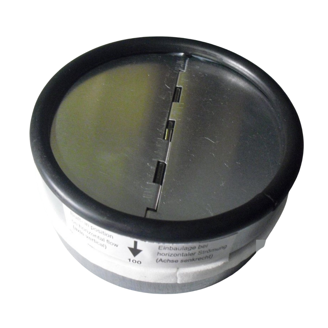 Alu Flex Rohr oder Kunststoff Rund Rohr - Rückstauklappe BDSI mit Aluminium Klappenblättern, Edelstahl Achse und Federn im Teleskoprohr